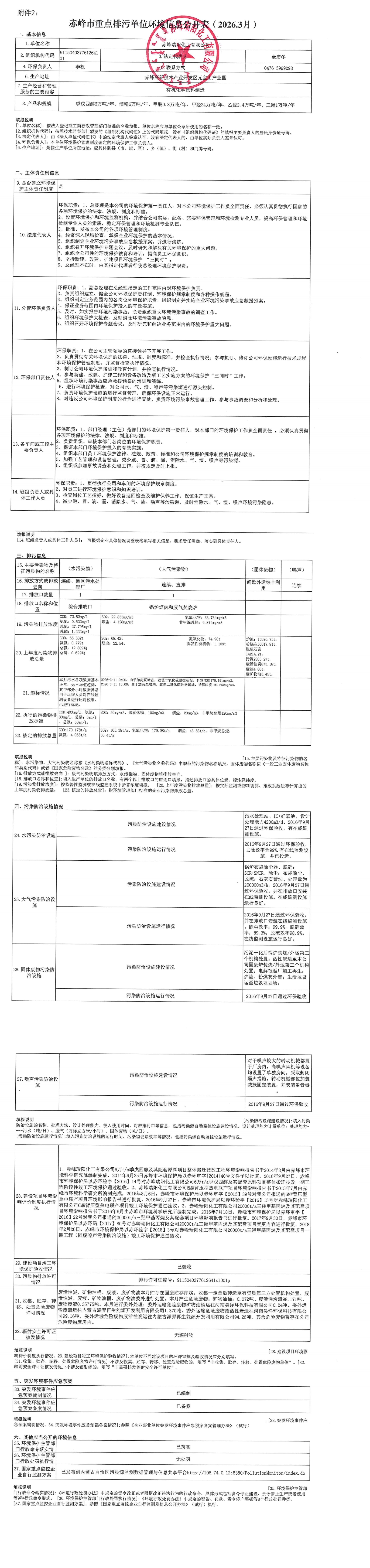 赤峰市重点排污单位环境信息公开表【2026.02】