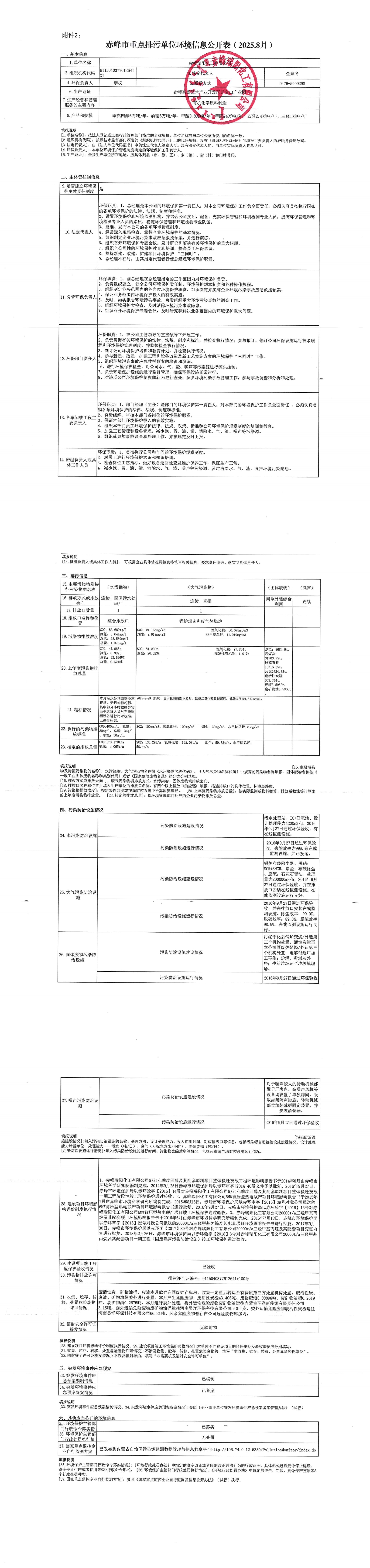 赤峰市重点排污单位环境信息公开表【2025.08】